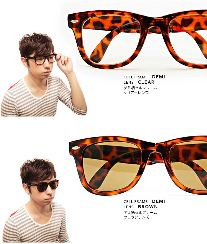 素材 プラスチックコーティングレンズ/プラスチックフレーム 透過率 可視光線透過率:10%(ブラック/スモーク)/90%(他カラー)紫外線透過率1%以下(UVカット率99%) フレームカラー/レンズカラー ブラック(黒色)/クリア(透明)、ブラック(黒色)/スモーク(灰色)、デミ(レオパード べっ甲柄)/クリア(透明)、デミ(レオパード べっ甲柄)/ブラウンハーフ(茶色) 在庫について こちらの商品は、姉妹店の実店舗と在庫を共有しており、在庫がある商品は即日発送致します。